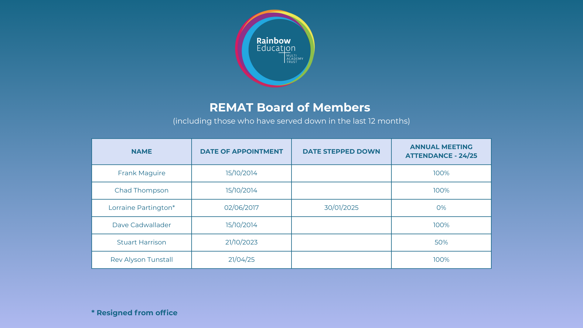 The Members have an overview of the governance arrangements of the Trust and the power to appoint and remove Trustees. While members hold the Trust Board to account for the effective governance of the Trust, the members themselves have a minimal role in the actual running of the Trust.